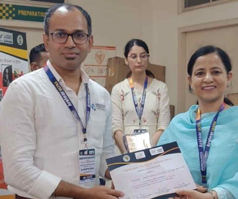 Senior Programme Manager Tapobrat Bhuyan and Project Officer Emmanuel Benia Tanti presented. Project Coordinator Aditya Sharma (shown at the top, left) brought home the award for Best Paper for Oral Presentation. Operation Eyesight was also honored with an award as a founding member for its contributions to VISION 2020.